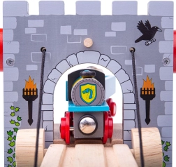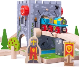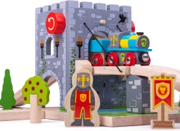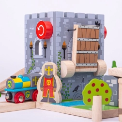Sukurkite trasoje viduramžių tvirtovę! Medinis pakeliamas BIGJIGS RAIL tiltas su veikiančia gerve leidžia vaikams pakelti tiltą, sustabdyti traukinuką ir surengti riteriškus nuotykius. Realistiškas akmenų mūras, herbai, deglai ir tiltas per „vandens“ griovį žadina vaizduotę ir skatina teminį žaidimą.