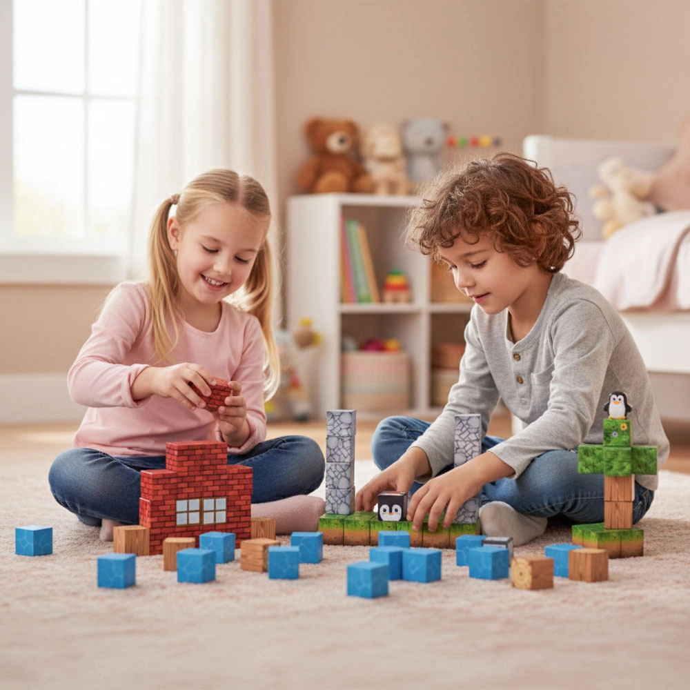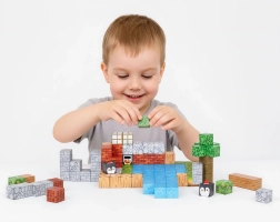 Šis spalvingų magnetinių kaladėlių rinkinys leidžia vaikams statyti bokštus, namelius, tiltus ir ištisas voxel tipo erdves. Dėl integruotų magnetų detalės greitai ir patikimai susijungia iš visų pusių – be frustracijos ir su akimirksniu pasiekiama sėkme. Kaladėlės su žolės, medžio, akmens ir vandens dekorais skatina kūrybišką žaidimą ir teminių scenų kūrimą.