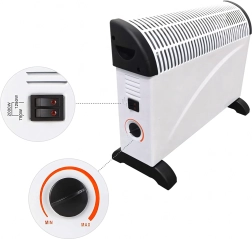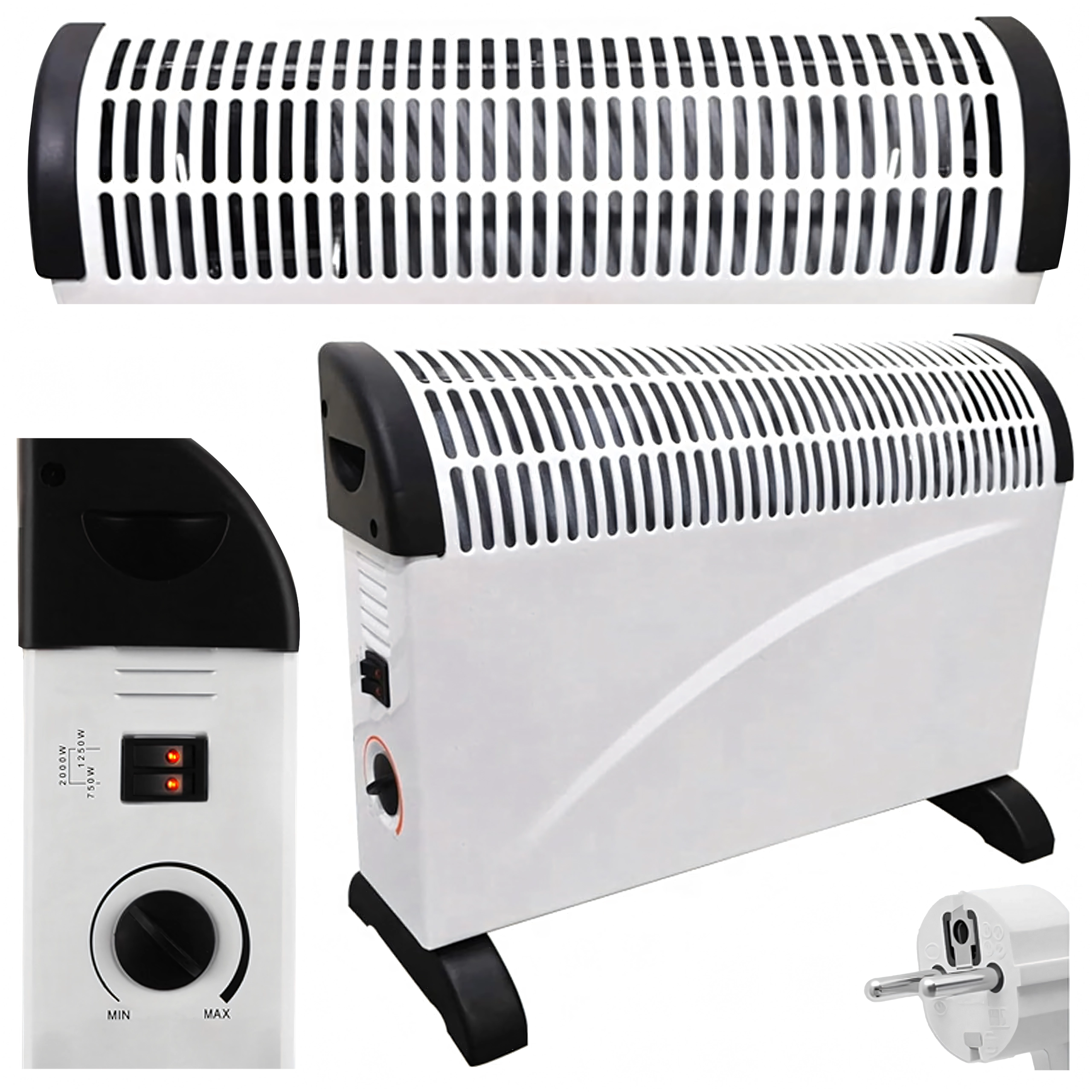 Kompaktiškas elektrinis konvektorius, kurio galia 2000 W, užtikrina greitą, tylų ir efektyvų šildymą namuose ir biure. Dėl reguliuojamo termostato ir trijų galios lygių lengvai pritaikysite šilumą pagal esamas sąlygas. Stabili konstrukcija, mažas triukšmo lygis ir taupus veikimas daro jį idealiu pasirinkimu vėsioms dienoms.