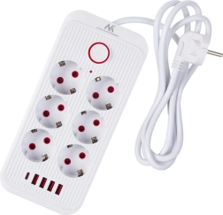 - 6 AC lizdai keliems prietaisams prijungti vienu metu