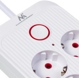 Integruotas mygtukas su indikacija leidžia vienu paspaudimu išjungti arba įjungti visus prijungtus įrenginius. Vaikiškos užuolaidėlės apsaugo nuo atsitiktinio prisilietimo.