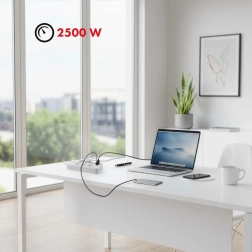 Ši šiuolaikiška maitinimo juosta vienija klasikinius lizdus ir greitą USB įkrovimą viename kompaktiškame sprendime. Turėsite pakankamai vietos viskam – nuo nešiojamojo kompiuterio ir monitoriaus iki išmaniųjų telefonų, planšečių ir aksesuarų – be papildomų įkroviklių.