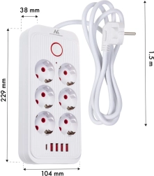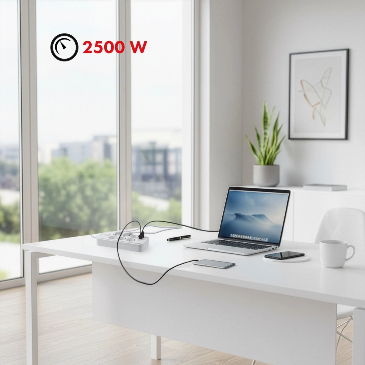 Universali prailginimo juosta su 6 lizdais ir 5 USB prievadais (4× USB‑A, 1× USB‑C), skirta vienu metu maitinti ir įkrauti kelis įrenginius. Suteikia 2500 W galią, palaiko 110–240 V / 50–60 Hz ir dėl tvirtos konstrukcijos puikiai tinka biurui, namams ir žaidimų kampeliui.