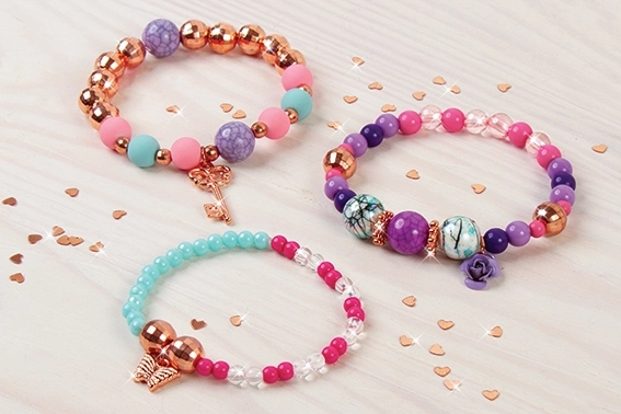 Dėl 90 karoliukų, 3 pakabukų ir tamprios gumelės lengvai sukursi unikalių apyrankių kiekvienai progai.