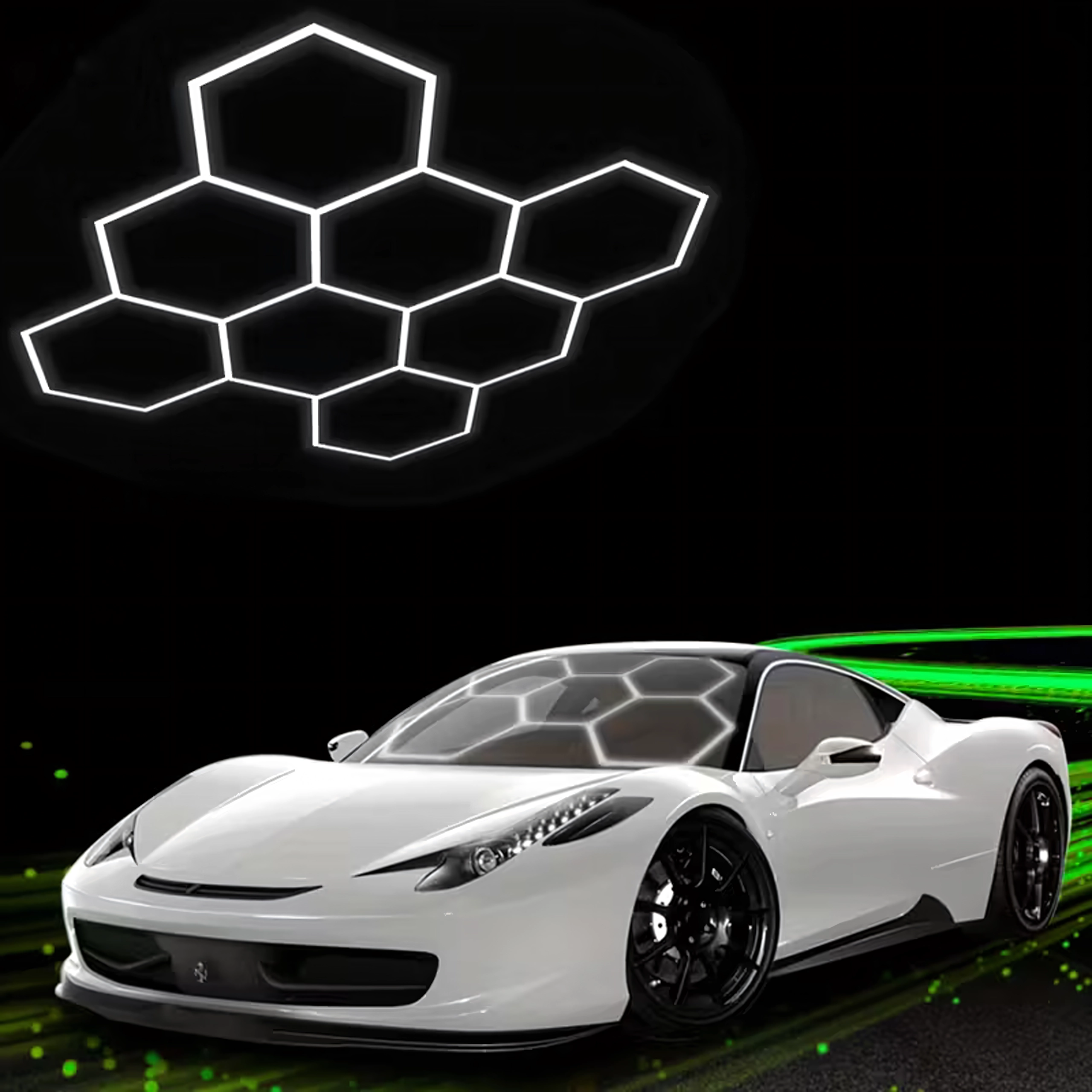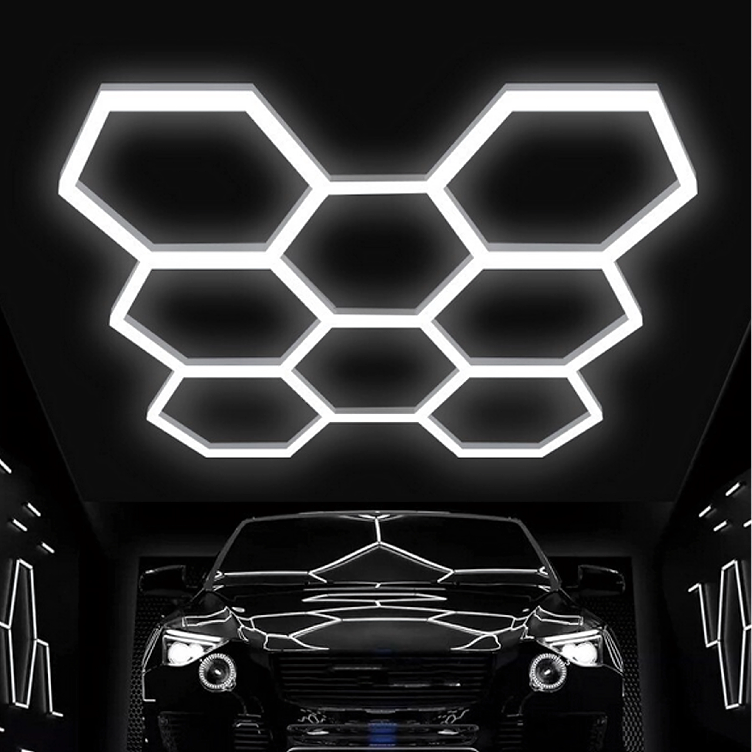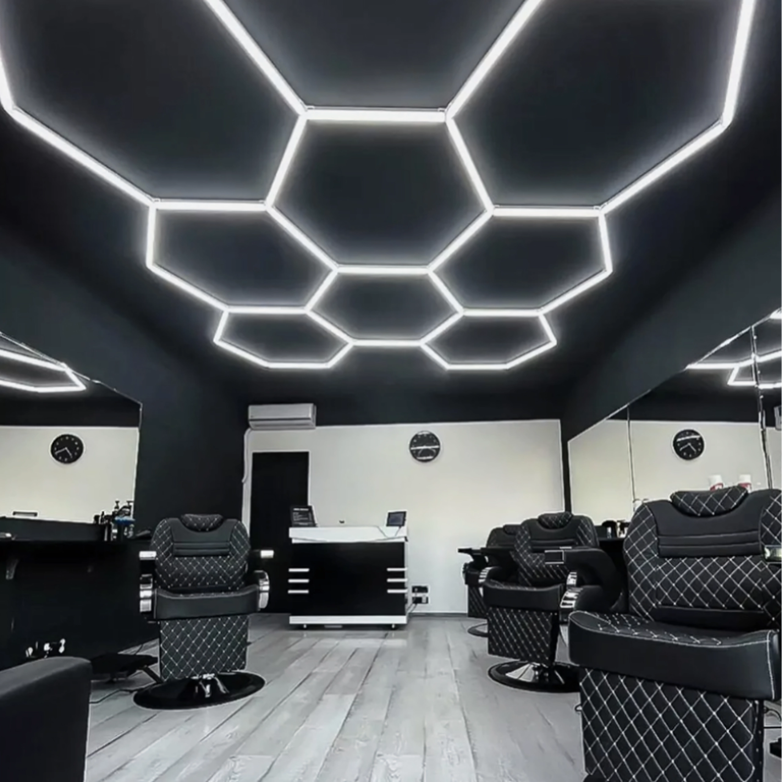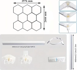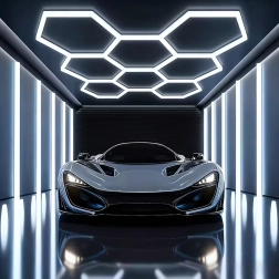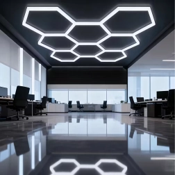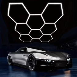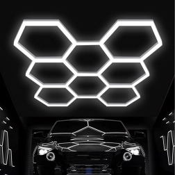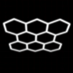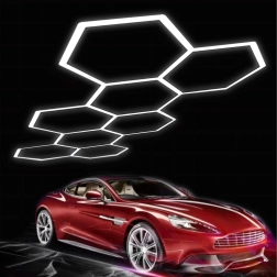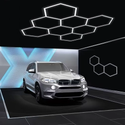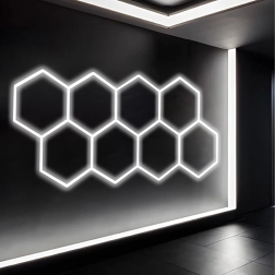 Šešiakampį LED skydelį sudaro modulinė konstrukcija, kuri sukuria įspūdingą, korio įkvėptą raštą. Dėl didelės 280 W galios ir šaltos 6500K spalvinės temperatūros jis suteikia ryškią, švarią ir tolygią šviesą darbui bei transporto priemonių, produktų ar interjerų pristatymui. Puikus pasirinkimas garažams, detailing boksams, salonams, biurams ir šiuolaikiniams namams.