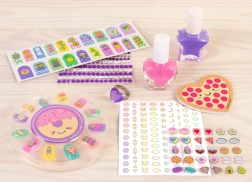 Į pakuotę įeina ne tik lakai, bet ir praktiški priedai nagų formavimui bei puošybai. Jų dėka vaikai gali išbandyti, ką reiškia turėti salono lygio manikiūrą namuose ir saugiai lavinti vaizduotę.