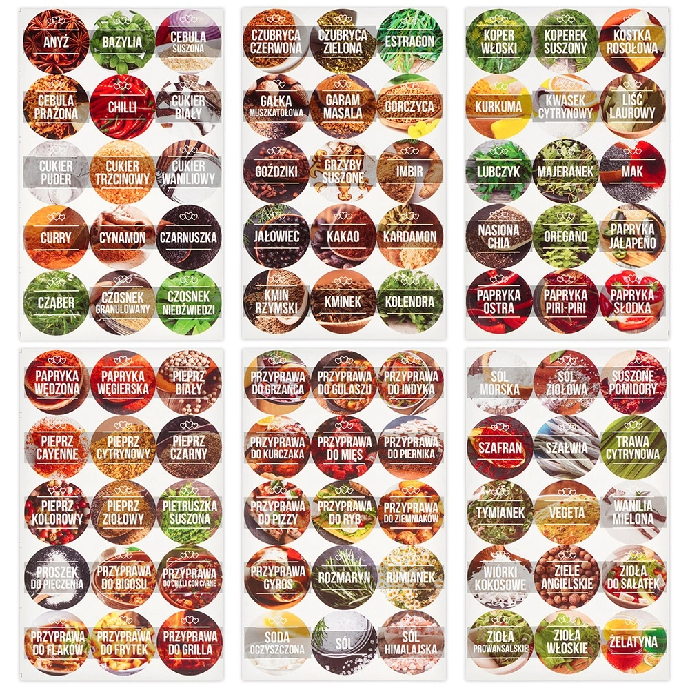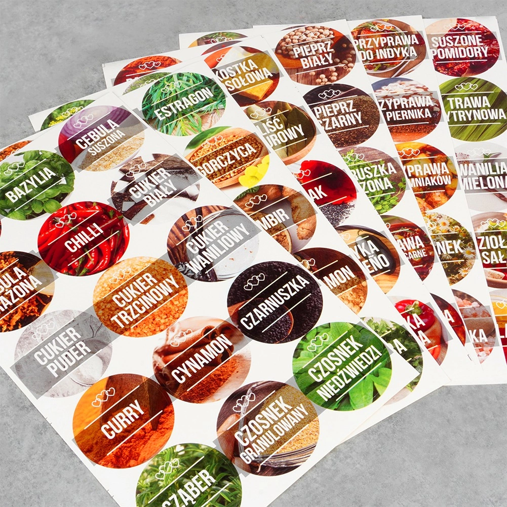 90 lipnių etikečių su populiariausių prieskonių pavadinimais suteikia profesionalią išvaizdą ir padeda greitai rasti reikiamą ingredientą gaminant.