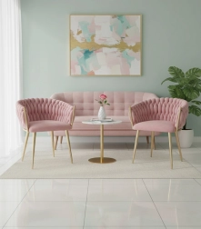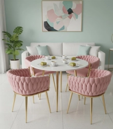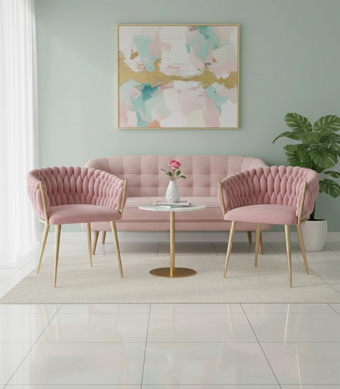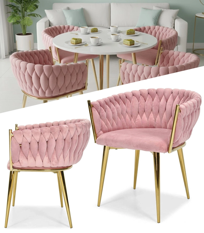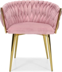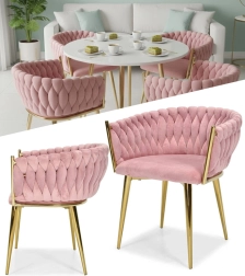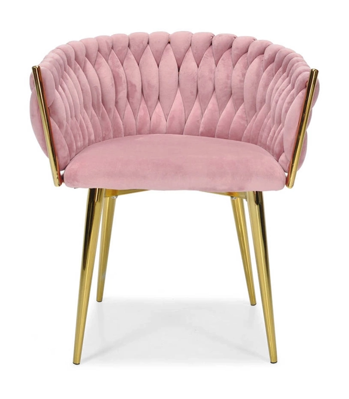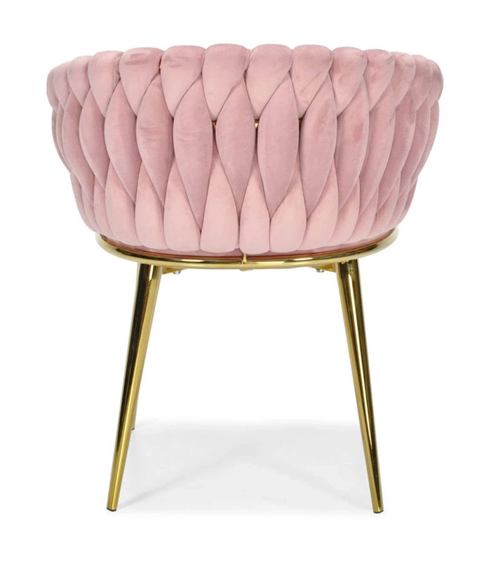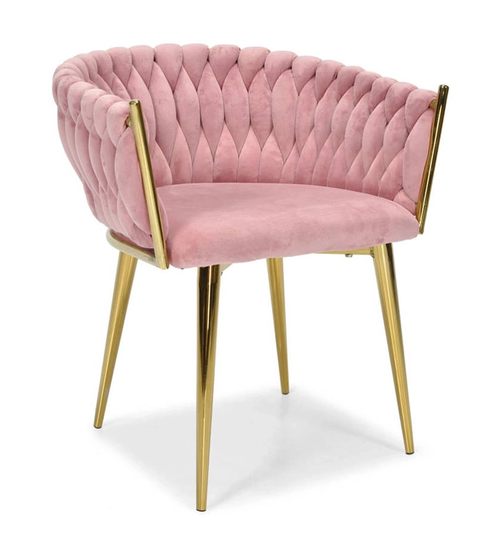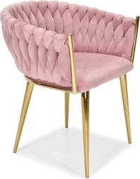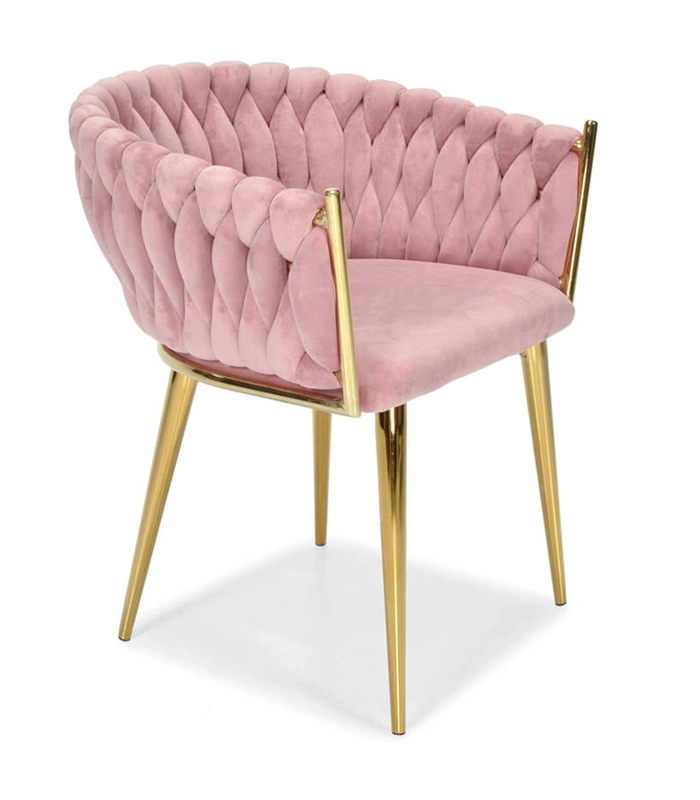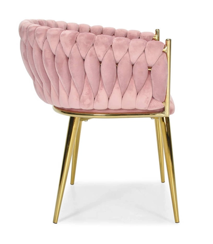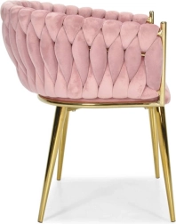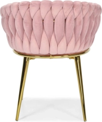 Ši dizaino kėdė yra tikras interjero perlas. Pinti aksominiai apmušalai sukuria įspūdingą 3D struktūrą, kuri akimirksniu patraukia dėmesį ir atrodo ypač rafinuotai. Pudrinė rožinė spalva yra santūri, tačiau išraiškinga – ideali moderniems ir glamour deriniams.