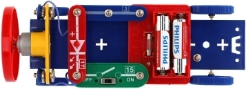 Surinkite paprastą transporto priemonę su varikliu ir jungikliu, kuri dėl sraigtelio pajudės. Vaikai iškart pamato, kaip elektrinė grandinė įjungia modelį į judėjimą.