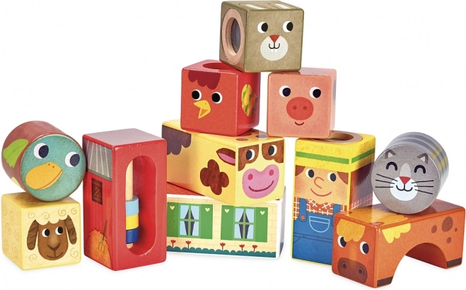 Pristatome Vilac medines garso kaladėles Ūkis – puikų žaislą mažiesiems tyrinėtojams. Šiame rinkinyje yra vienuolika medinių kaladėlių, kiekviena su skirtingais ūkio motyvais, kurios sukant ir purtant skleidžia įvairius garsus.