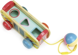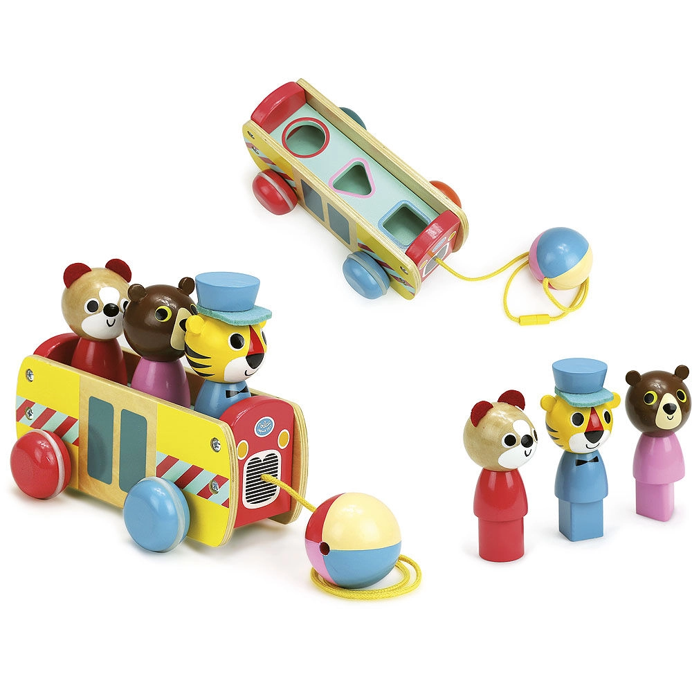 Šis vilkimas autobusas pagamintas iš aukštos kokybės medienos ir siūlo ne tik pramogą, bet ir iššūkį mažiesiems mąstytojams. Ryškios spalvos ir gyvūnėliai, kuriuos galima įdėti ir išimti, skatina vaikų raidą keliose srityse: