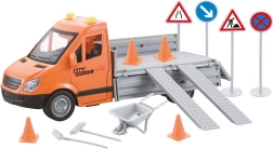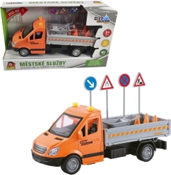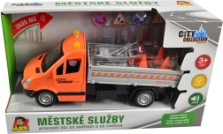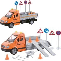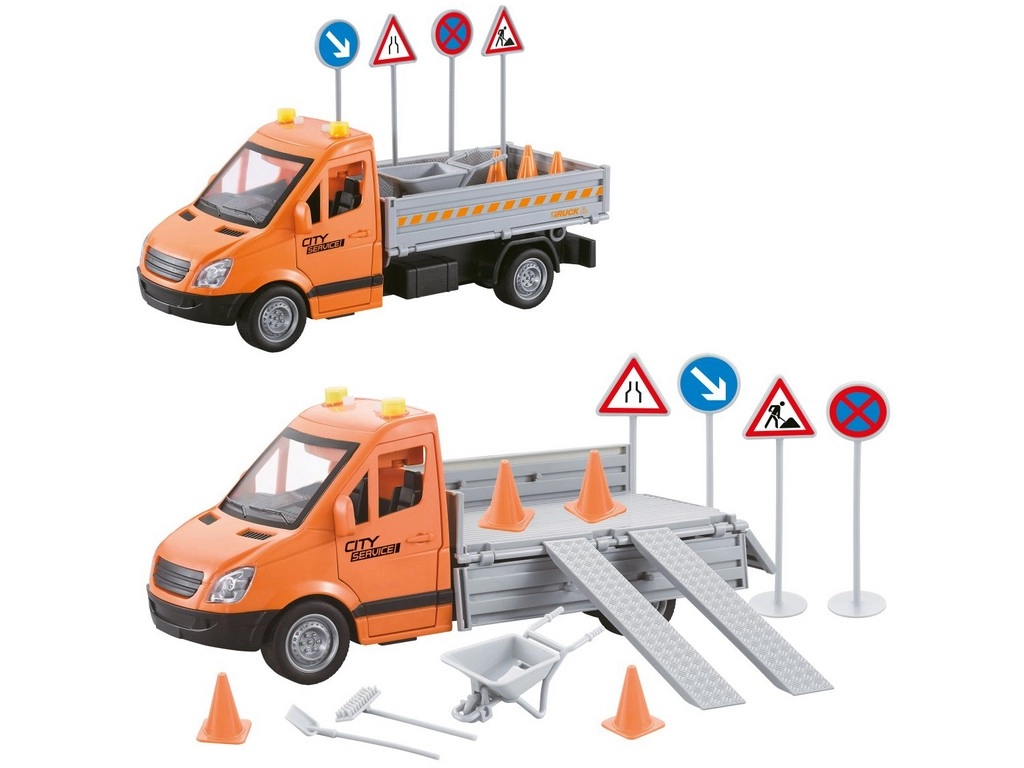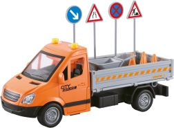 Atraskite smagų miesto techninės priežiūros sunkvežimį su inerciniu mechanizmu, 24 cm ilgio, kuris pradžiugins kiekvieną mažą vairuotoją. Dėl realistiškos išvaizdos ir gausios komplektacijos, tokios kaip kūgiai, ženklai ar įrankiai, vaikai mėgausis valandomis kūrybiško žaidimo. Patvari plastikinė konstrukcija idealiai tinka vaikams nuo 3 metų.