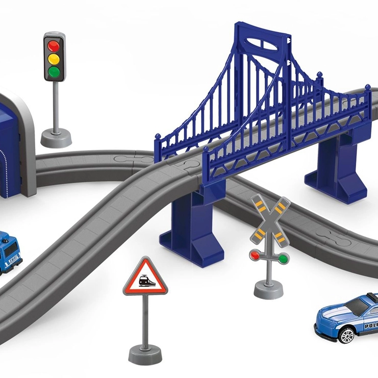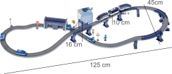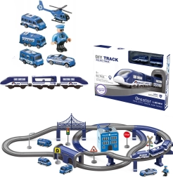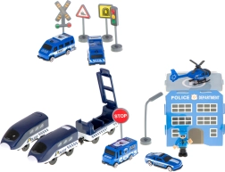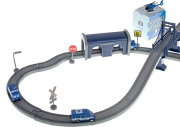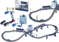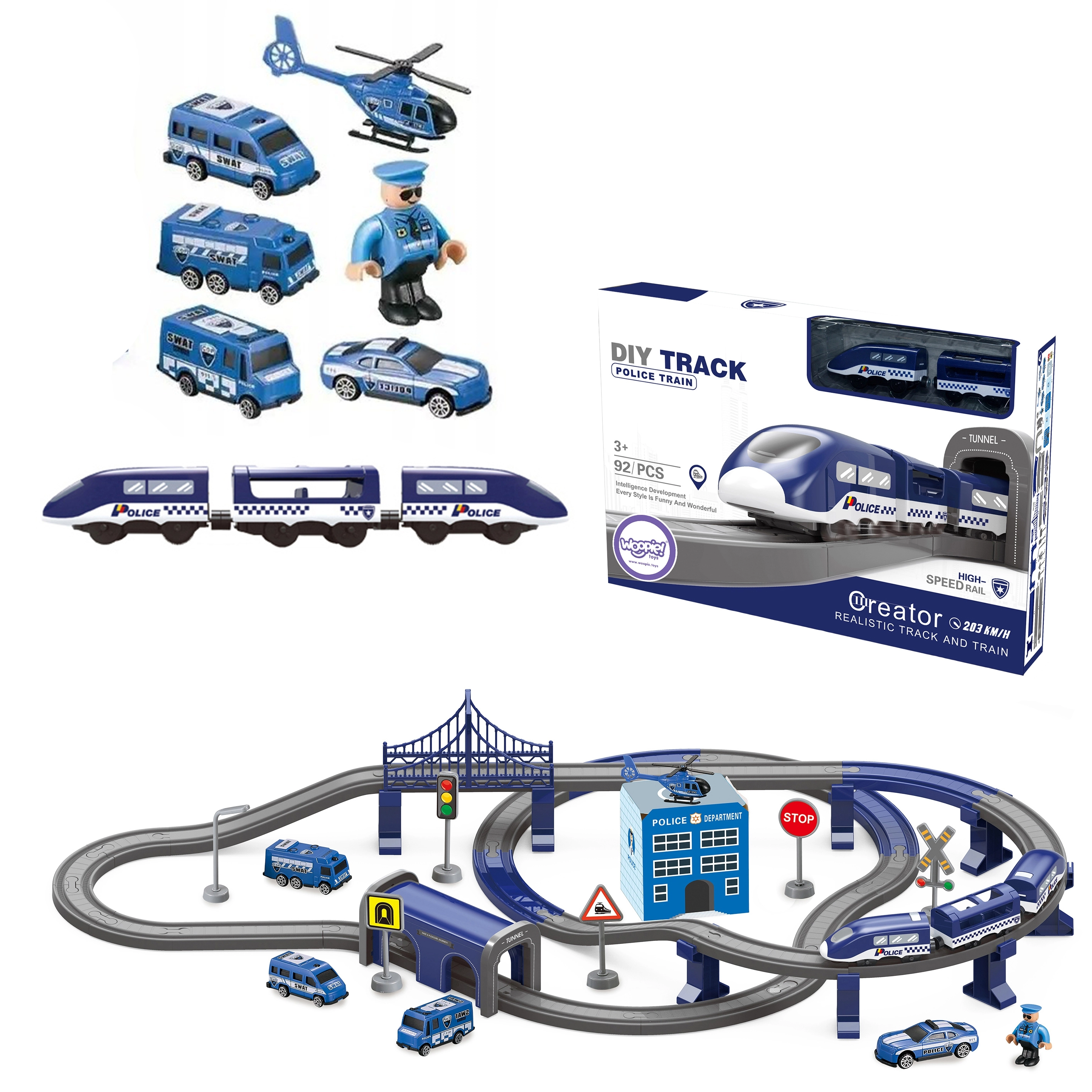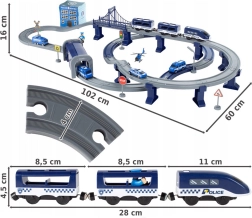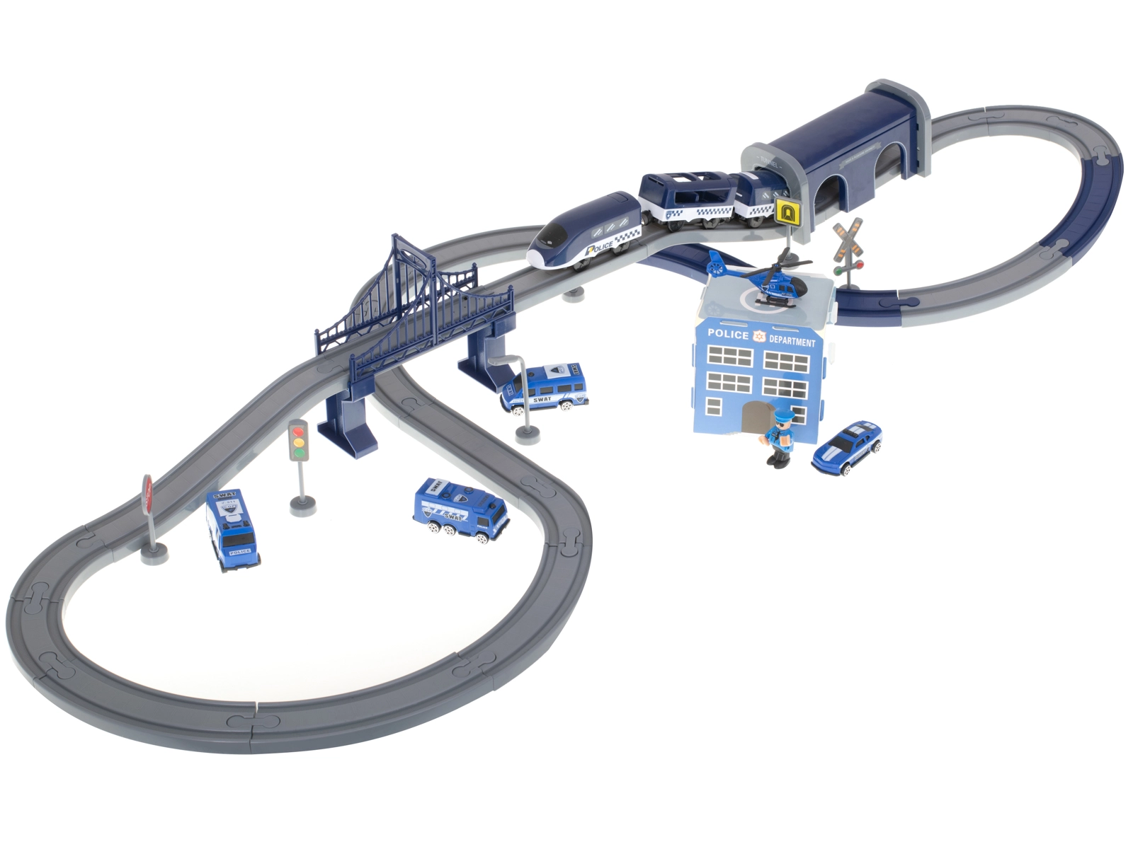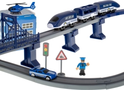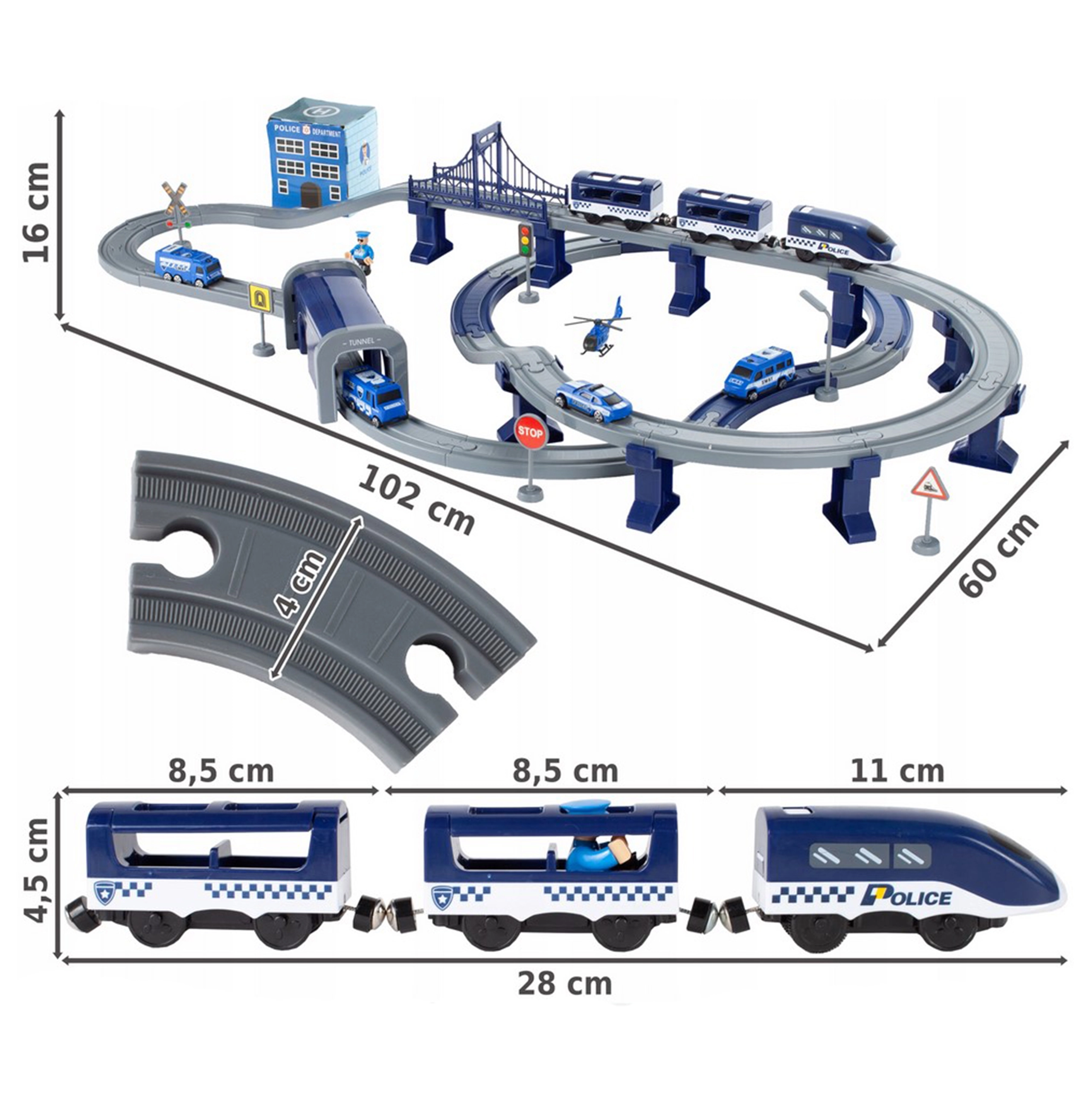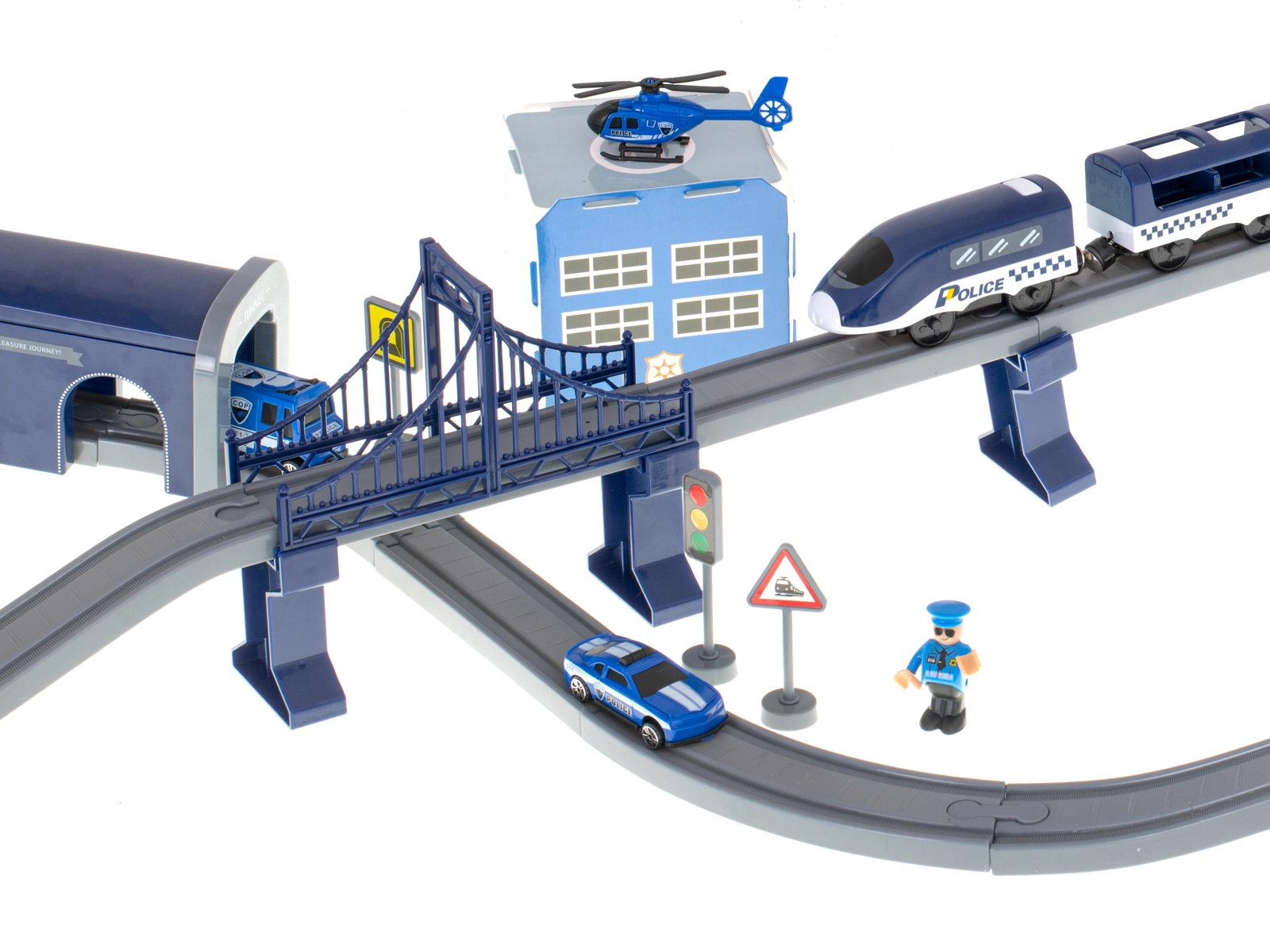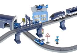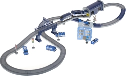 Ši kruopščiai sukurta policijos traukinių trasa sujungia mėgstamus vaikų pasaulius – traukiniai, automobiliai, sraigtasparniai ir policija. Dėl gausaus dalių rinkinio galėsite pastatyti iki 6 skirtingų trasų variantų, įskaitant dviaukštį maršrutą, tiltą ir tunelį. Magnetiniai vagonų sujungimai palengvina naudojimą, o varoma lokomotyva užtikrina sklandų važiavimą.