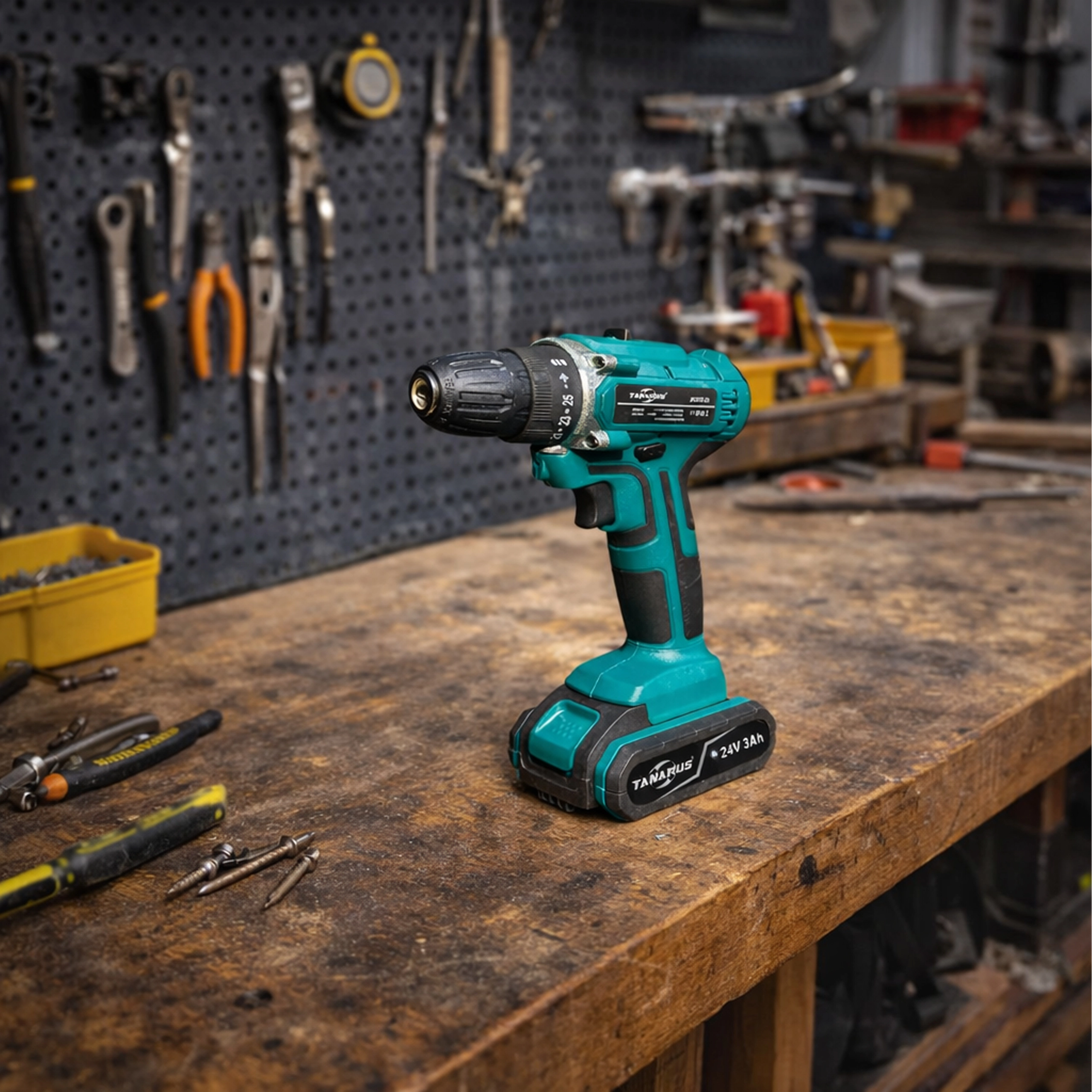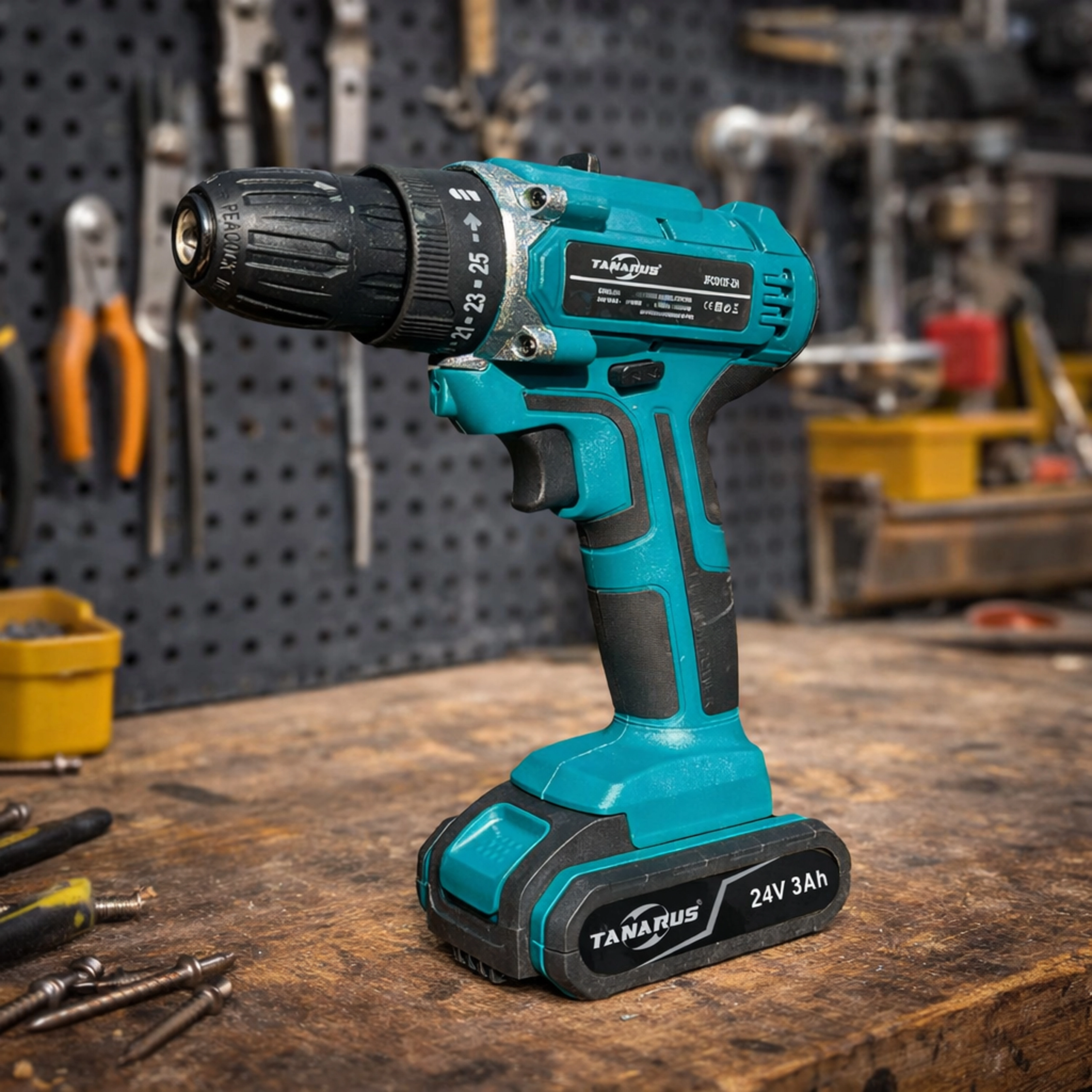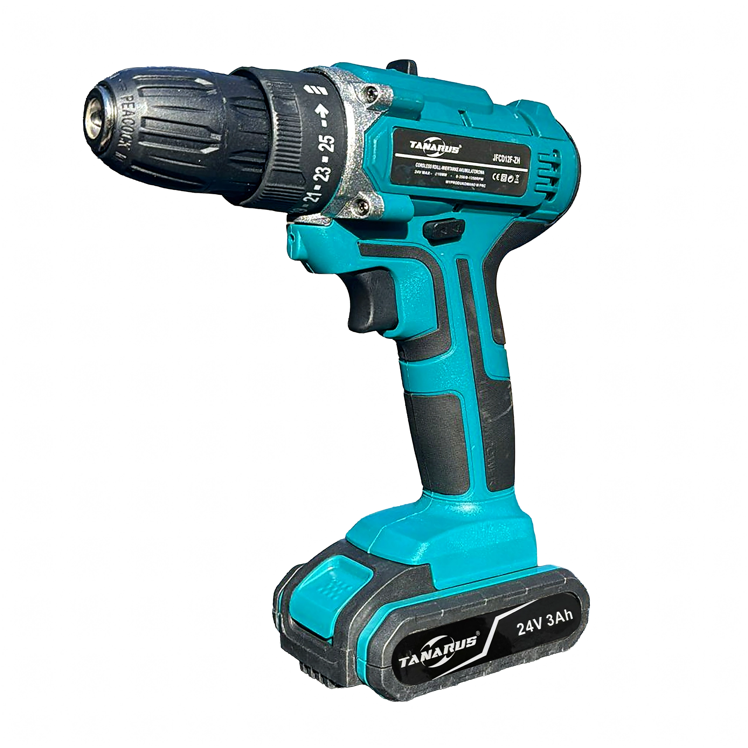 24 V variklis suteikia pakankamai galios greitam gręžimui į medį, metalą ir plastiką bei efektyviam sukimui be pastangų.