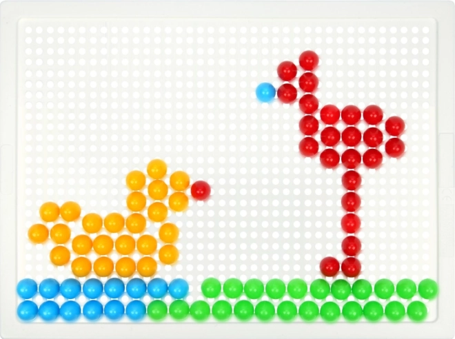 LENA mozaika su 100 spalvotų smeigtukų – puikus pasirinkimas kūrybiniam žaidimui namuose ar darželyje. Dėl paprastos smeigtukų segiojimo sistemos į perforuotą lentą vaikai lavina koordinaciją ir kantrybę, kurdami savo motyvus – gyvūnus, transportą ar fantazinius raštus.