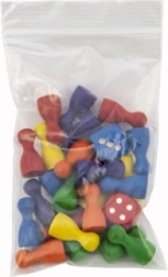 Praktiškas pakaitinių figūrėlių rinkinys stalo žaidimams, puikiai tinka „Neužsirūstink, žmogau!“. Sudėtyje 24 vnt. šešių spalvų ir du žaidimų kauliukai. Figūrėlės pagamintos iš kokybiškos medienos, 25 mm aukščio, supakuota į kompaktišką 7×13 cm užsegamą maišelį. Mėgaukitės be rūpesčių žaidimu su pilnu rinkiniu ir patvariomis medinėmis figūrėlėmis šešių ryškių spalvų bei dviem kauliukais.