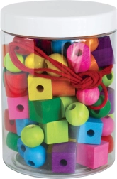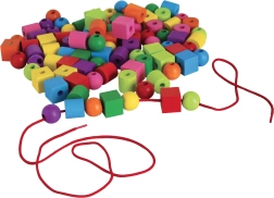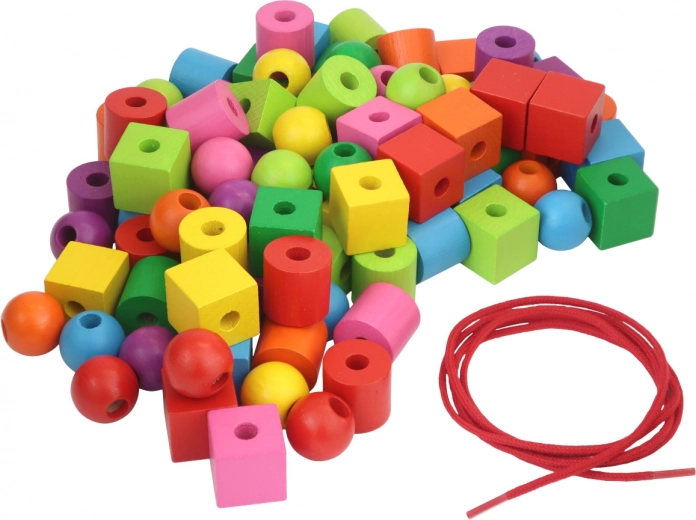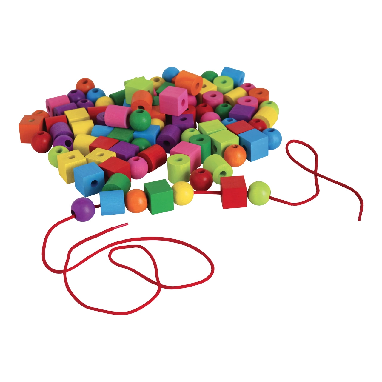 Mediniai karoliukai pateikiami įvairių formų, tokių kaip rutuliai ir kubeliai, ir ryškių spalvų, kurios moko vaikus atpažinti spalvas.