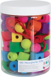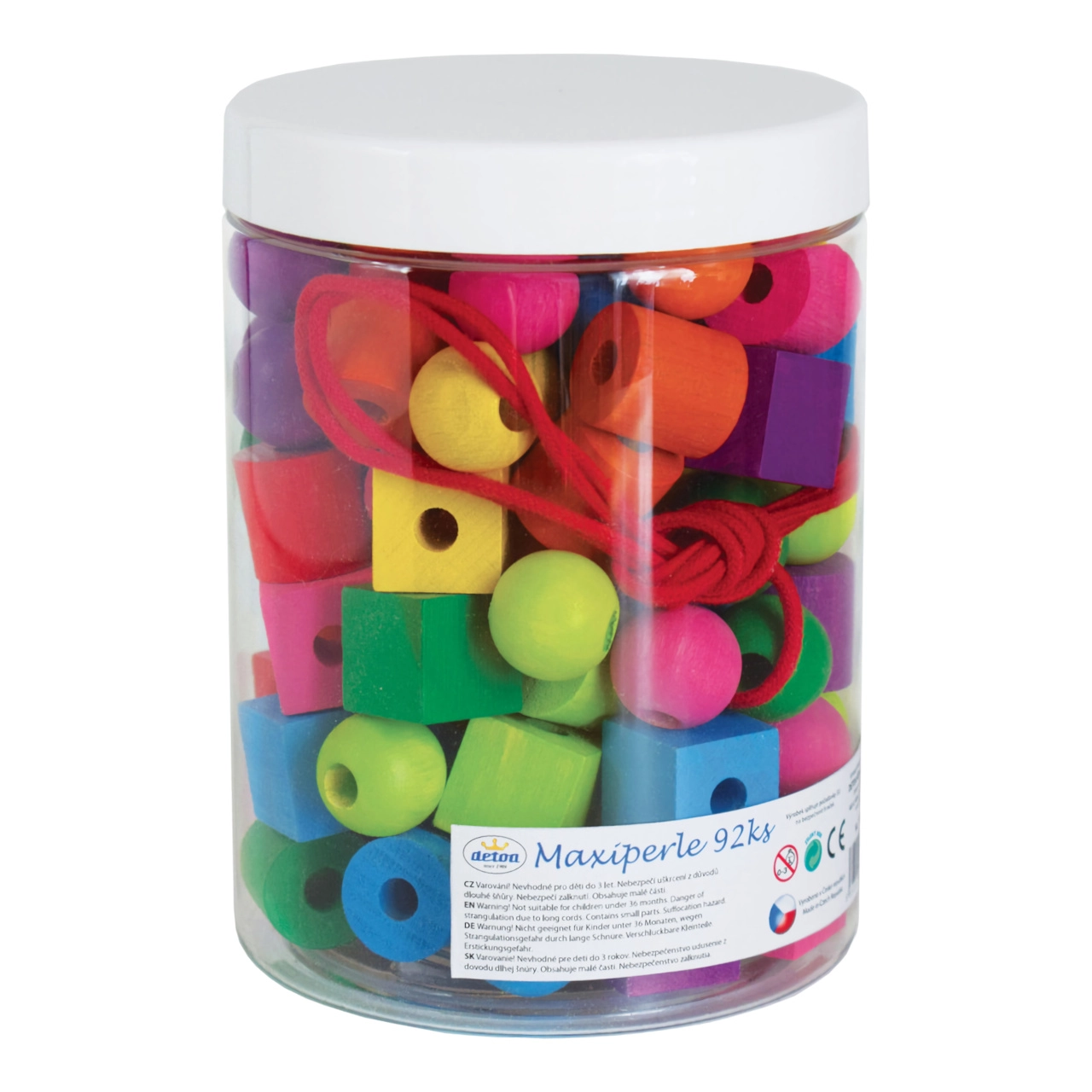 Spalvoti mediniai maxi karoliukai yra idealus rinkinys vaikams nuo 3 metų, norintiems lavinti vikrumą ir kartu smagiai leisti laiką. Šiame rinkinyje yra 92 skirtingų formų ir spalvų detalės, kurias galima verti ant pridėtos tvirtos virvelės.