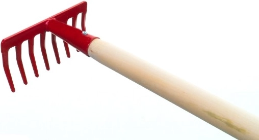 Šis vaikiškas grėblys su tvirta metaline galvute ir patogiu mediniu kotu puikiai tinka pirmajai pagalbai sode – nuo lapų sugrėbimo iki dirvos išlyginimo. Dėl kompaktiško 80 cm ilgio jį lengva laikyti ir jis padeda formuoti teisingus darbo įpročius.