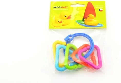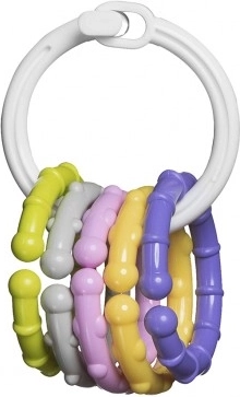 Lengvas žiedas patogiai telpa delne, o pakabukus lengva laikyti. Žaisdamas vaikas lavina suėmimą, vikrumą ir daiktų manipuliavimo įgūdžius.