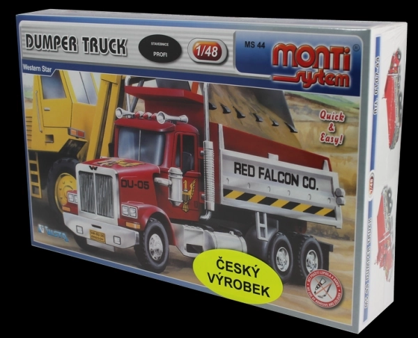 Monti System MS 44 – Dumper Truck yra populiarus rinkinys, kurio surinkimui nereikia klijų ir dažymo. Atskiri elementai tiksliai susijungia, todėl surinkimas yra greitas, švarus ir įtraukiantis. Masteliu 1:48 gausite patrauklų savivarčio sunkvežimio WESTERN STAR modelį, kuris pradžiugins tiek mažus, tiek didelius technikos gerbėjus.