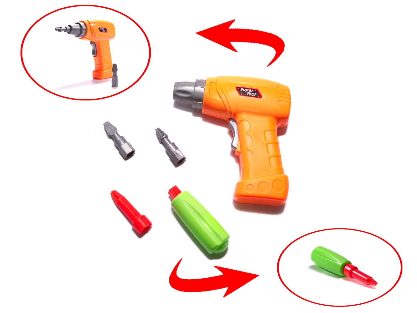 Gręžtuvas yra lengvas ir paprastai valdomas, todėl suteikia vaikams realistišką įrankio naudojimo patirtį.