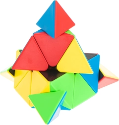 Šis galvosūkis pagamintas iš spalvotų plastikinių detalių, kurios tarpusavyje susijungia ir sukuria patrauklią geometrinę formą.