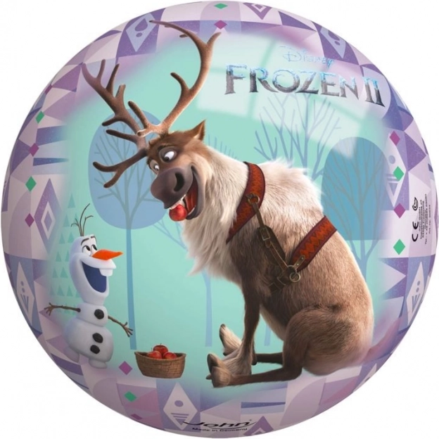 Paveikslėliais dekoruotas kamuolys su pamėgtų personažų iš populiaraus animacinio filmo Frozen II atvaizdais džiugina tiek vaikus, tiek suaugusiuosius. Šis kamuolys pagamintas iš aukštos kokybės, vandeniui atsparios medžiagos, todėl yra puikus pasirinkimas įvairiems žaidimams ne tik sode ar aikštelėje.