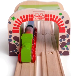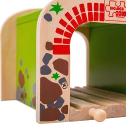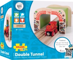 Medinis dvigubas tunelis BIGJIGS RAIL į medinių geležinkelio trasų pasaulį įneša daugiau veiksmo ir sklandesnį eismą. Dėl dviejų bėgių pravažos vienu metu gali važiuoti du traukinukai, kas skatina bendrą žaidimą ir koordinacijos lavinimą. Tvirta konstrukcija ir patrauklus plytų bei akmens motyvas suteikia trasai realistišką išvaizdą.