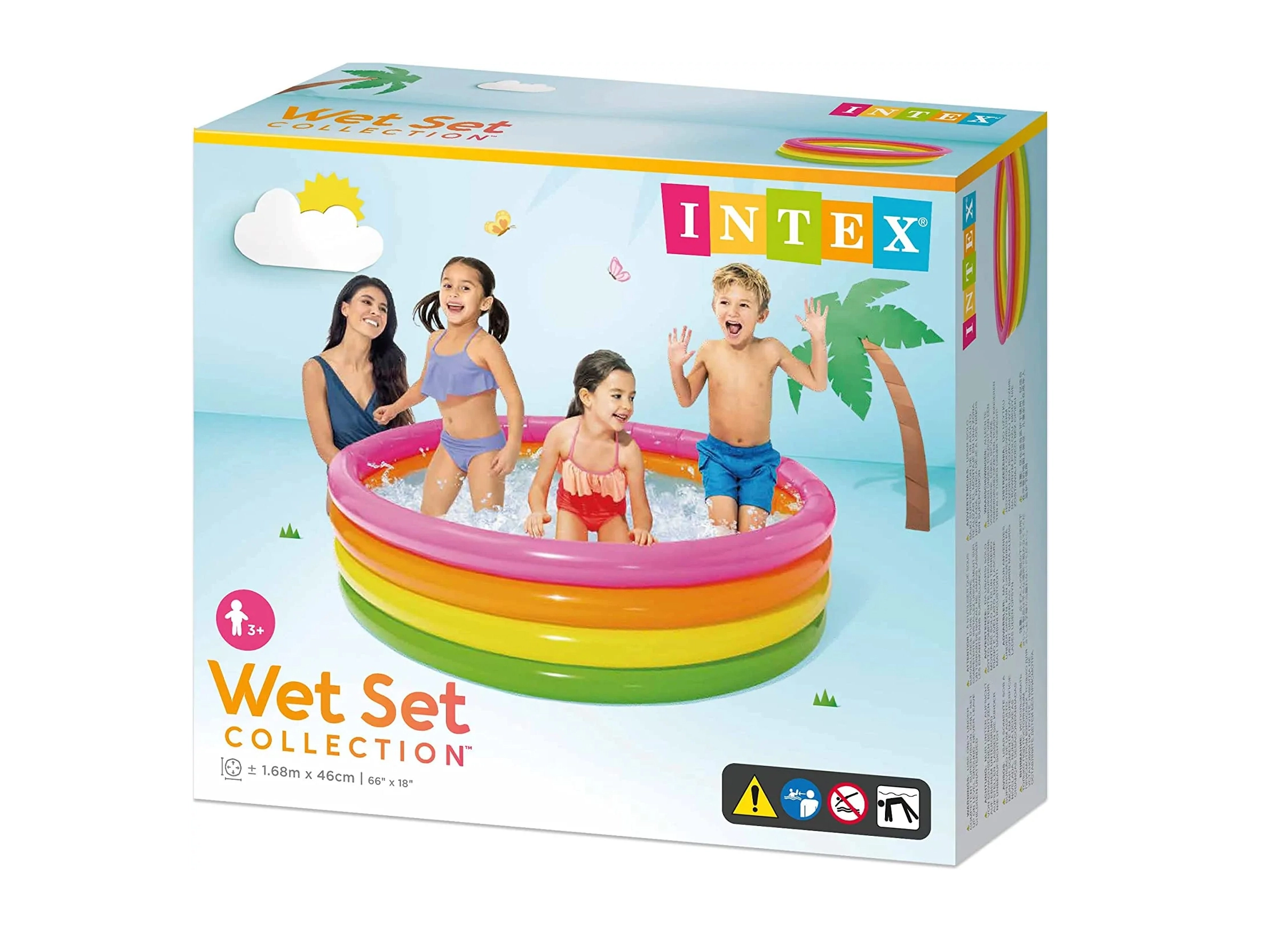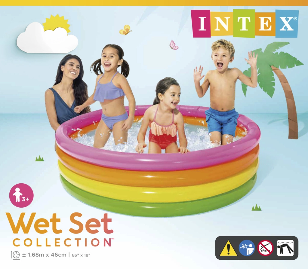 Pripučiamas INTEX baseinas, kurio skersmuo 168 cm ir aukštis 46 cm, yra puikus pasirinkimas šeimoms, ieškančioms greito atsivėsinimo ir saugių vandens žaidimų vaikams. Dėl keturių spalvotų žiedų baseinas stabilus, tačiau lengvas ir paprastai pernešamas.