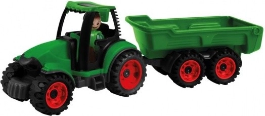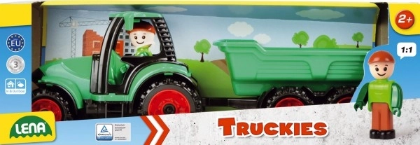 Traktorius su priekaba iš Truckies serijos pradžiugins mažus statybininkus ir ūkininkus. Dėl patvarios konstrukcijos ir visiškai mechaninio valdymo vaikai mėgausis autentišku žaidimu be baterijų – kėbulo kėlimu, priekabos prijungimu ir atjungimu bei vairavimu su vairuotojo figūrėle.