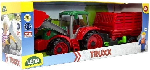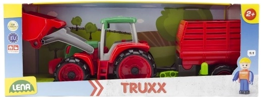 Pristatome Lena Truxx traktorių su priekaba – idealų žaislą mažiesiems ūkininkams. Šis plastikinis traktorius išsiskiria tvirtu dizainu raudonos ir žalios spalvos derinyje, papildytu veikiančiu kaušu ir nuimama priekaba. Traktoriaus kabinoje yra maža vairuotojo figūrėlė, kuri suteikia žaidimui daugiau realistiškumo.