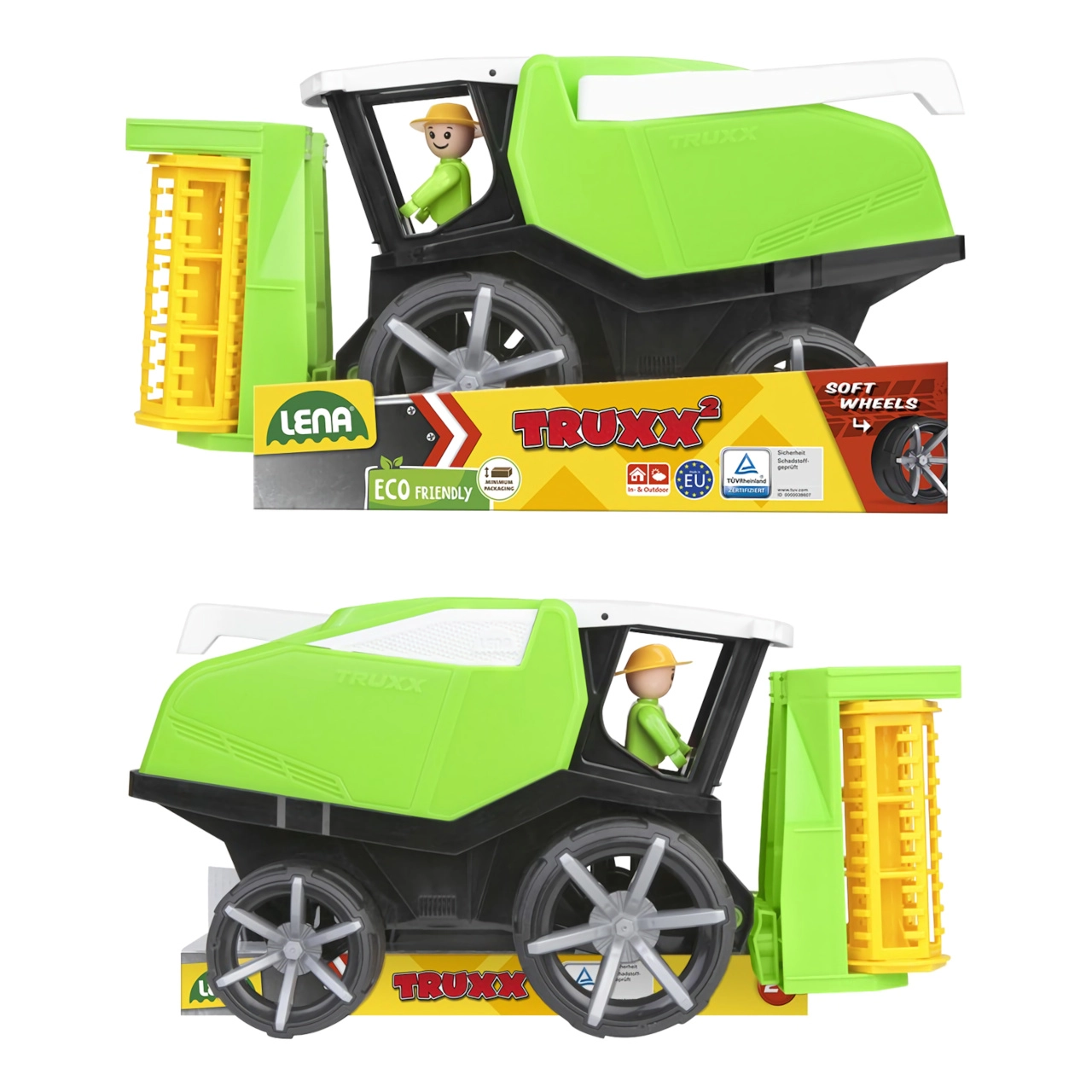 Kombainas LENA TRUXX 2 pradžiugins mažus technikos mėgėjus tikrovišku dizainu ir patvaria konstrukcija. Dėl atverčiamo stogo į kabiną lengva patekti, o pridėta vairuotojo figūrėlė dar labiau didina smagumą ir skatina fantaziją.