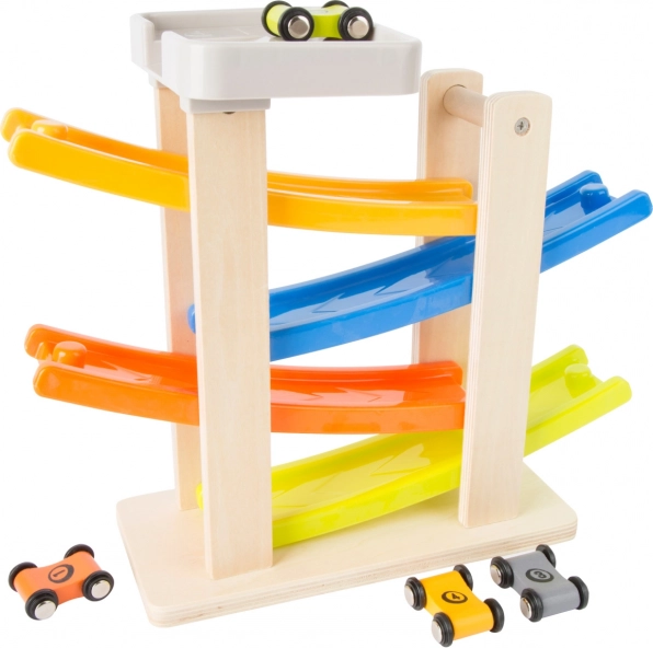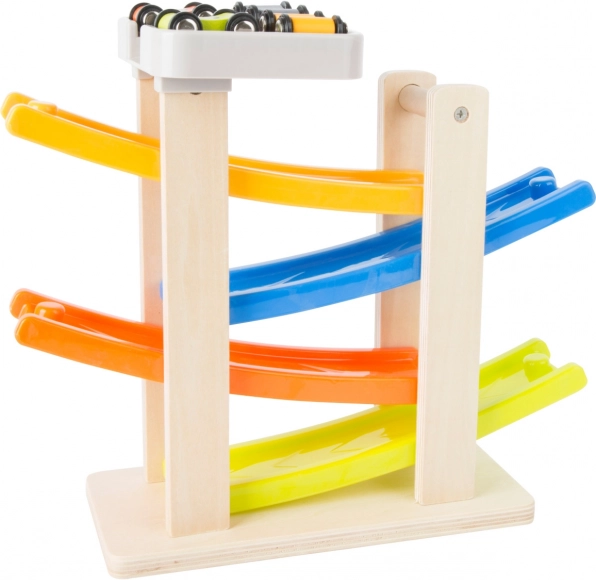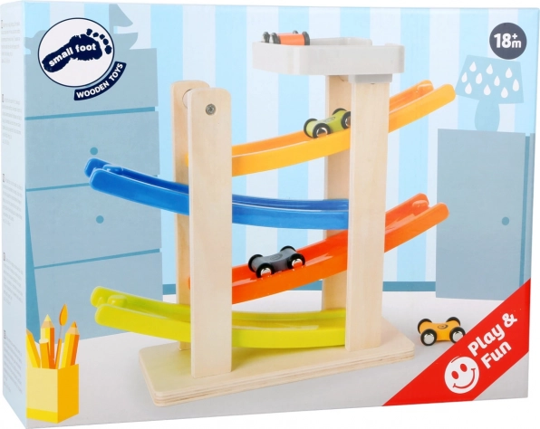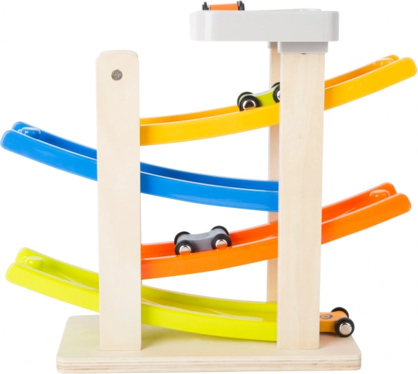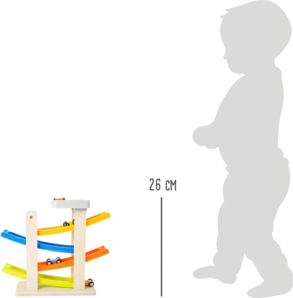 Ši žavinga klip klap trasa pagaminta iš medžio ir plastiko derinio, kuris užtikrina ilgą tarnavimo laiką ir patogų naudojimą. Su keturiomis spalvingomis rampomis vaikai gali stebėti, kaip mašinėlės leidžiasi žemyn darydamos įspūdingus šuolius ir posūkius. Ideali vaikams nuo 18 mėnesių, kurie mėgsta žaisti ir tuo pačiu lavinti savo motorinius įgūdžius.