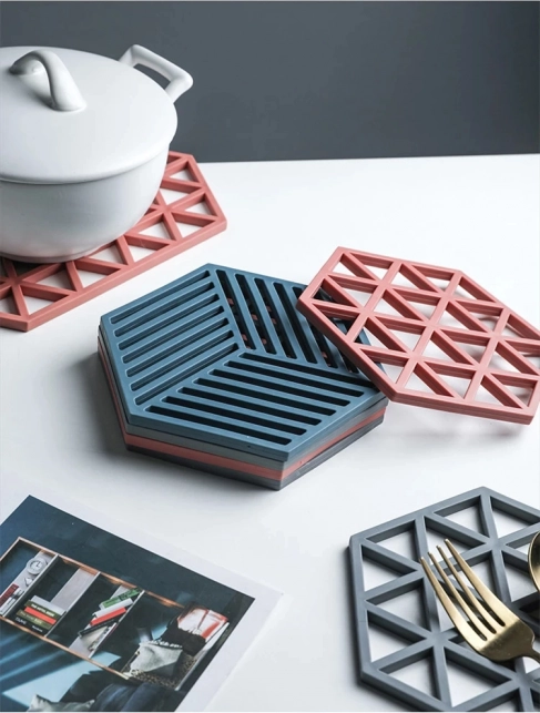 Stilinga silikoninė padėtėlė puodams ir keptuvėms, modernios šešiakampės formos, saugo stalą ir stalviršį nuo karščio ir dėmių. Dėl neslystančios tekstūros ji stabili ir lengvai prižiūrima. Puikus kiekvienos virtuvės aksesuaras su atsparia medžiaga, moderniu dizainu ir paprasta priežiūra.