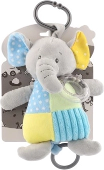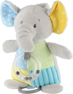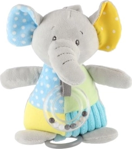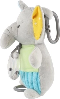 Mielas pliušinis drambliukas lengvai prisegamas prie lovytės arba vežimėlio plastiniu segtuku. Patraukus už žiedo grojama melodija, kuri skatina vaiko smalsumą ir jutimų raidą.