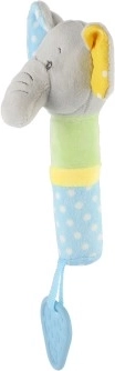 Praturtinkite savo vaiko žaidimų akimirkas šiuo žavingu žaislu! Pliušinis dramblys su cypleliu suteikia garsinę stimulaciją, kuri sudomina ir pralinksmina. Žaislo kramtukas padeda lavinti jutiminius įgūdžius ir užtikrina palengvėjimą dygstant dantukams. Išskirtinai švelni ir minkšta medžiaga yra saugi patiems mažiausiems.
