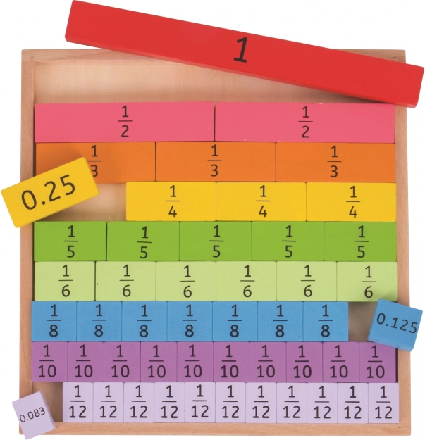 Linksma ir edukacinė priemonė mažiesiems matematikams, padedanti vaikams suprasti trupmenas ir jų tarpusavio ryšius. Dėka spalvotų dalių lengvai įsisavinami pagrindiniai matematiniai konceptai.