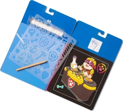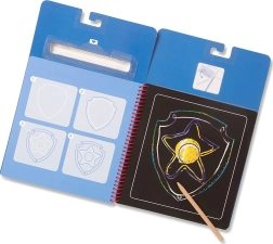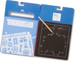 Atraskite linksmą braižymo bloknotą su Patrulės šuniukų motyvu mažiesiems menininkams. Dėl spiralinio įrišimo juo patogu naudotis namuose ir kelionėje – tereikia nubraukti juodą sluoksnį, ir atsiskleis magiškos spalvos. Rinkinyje yra 10 braižymo lapų, medinis graveris, šablonai ir lipdukai dar daugiau kūrybiškumo.