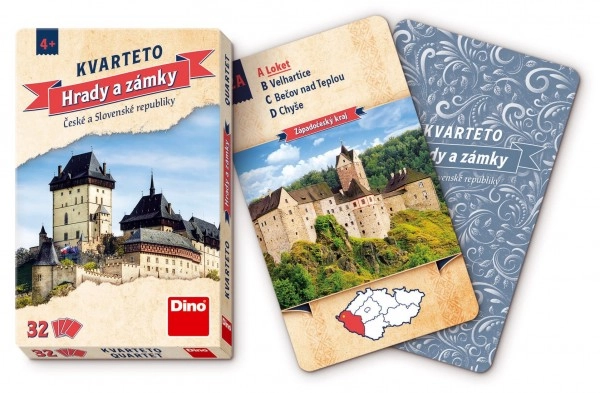 Pagaminta su rūpesčiu Čekijoje, žaidimas Kvartetas Pilys ir Dvarai siūlo kokybišką žaidimo patirtį vaikams. Rinkinyje yra 32 kortos, sudėtos į patogią popierinę dėžutę, taip pat naudojimo instrukcija.