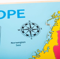 Medinė Europos žemėlapio dėlionė – ideali edukacinė priemonė smalsiems vaikams. Kiekviena dalis aiškiai pažymėta ir tiksliai įsistato į pagrindinę lentą, todėl vaikams lengva mokytis atpažinti atskirų šalių formas ir vietą. Kokybiškas apdirbimas užtikrina ilgaamžiškumą ir saugų žaidimą.