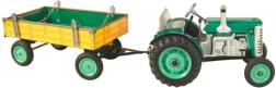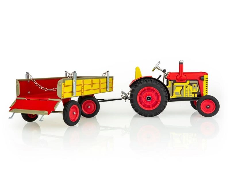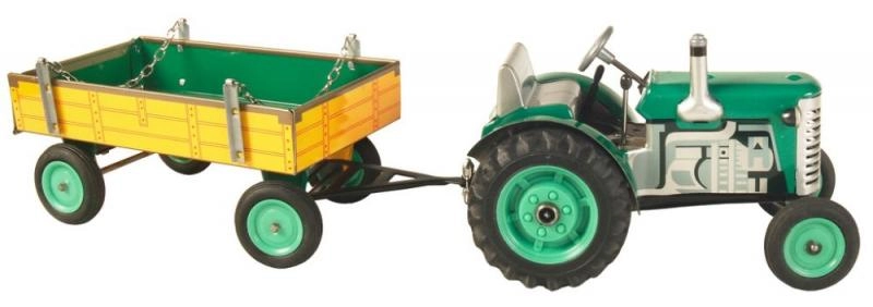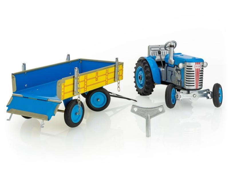 Klasikinis skardinis žaislas mažiems ir dideliems žemės ūkio technikos gerbėjams: Zetor traktorius su atjungiama priekabėle su spyruokliniu mechanizmu, užvedamu raktu. Siūlo 3 pavaras (pirmyn, neutralas, atbulinė), veikiantį vairavimą vairu ir rankinį stabdį. Preciziškas čekiškas meistriškas atlikimas, „Saugus žaislas“ sertifikatas ir tvirta konstrukcija iš spaustu raštuoto skardos, papildyta plastikiniais ratais.
