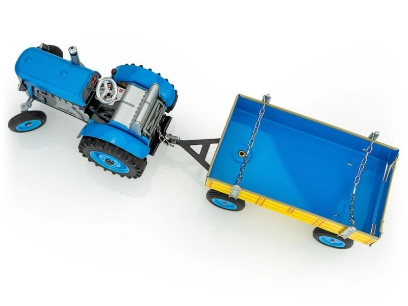 Šis skardinis Zetor traktorius su priekabėle masteliu 1:25 suteikia autentišką važiavimo patirtį ir kolekcinę vertę. Unikalus raktu užsukamas spyruoklinis mechanizmas užtikrina sklandų judėjimą, o trijų pavarų dėžė leidžia vaikams mėgautis realistiniu važiavimu pirmyn ir atgal. Priekabėlę lengva prijungti ar atjungti, vairuojama tikru vairu, taip pat yra rankinis stabdis saugiam sustojimui.