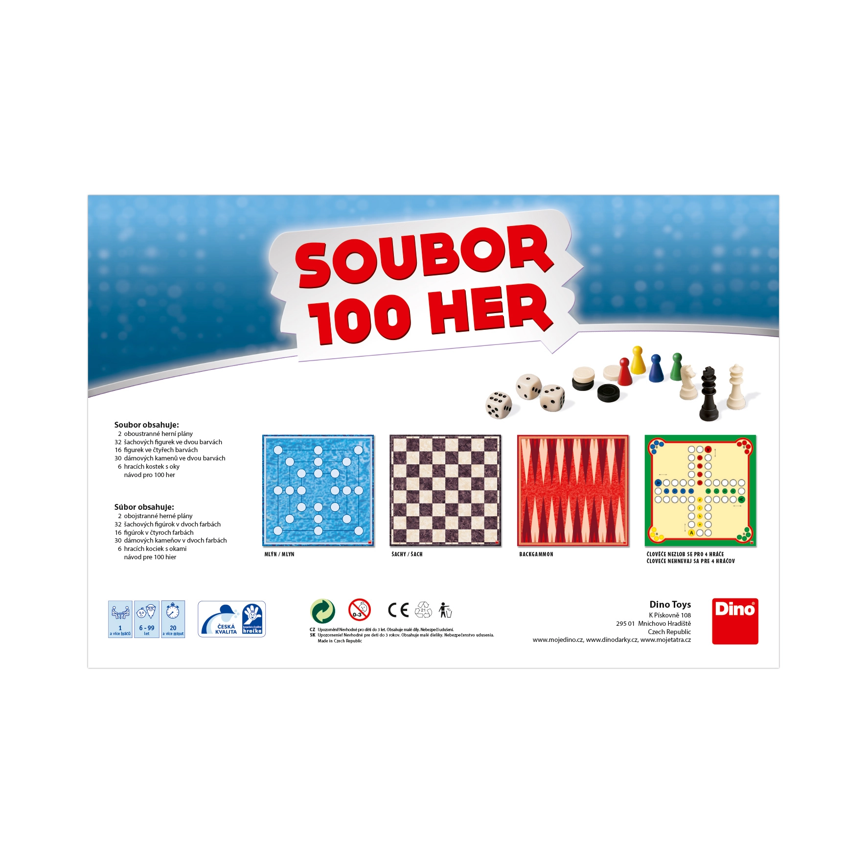 Rinkinys „100 žaidimų“ iš DINO prekės ženklo siūlo laikui nepavaldų pramogų rinkinį vienoje dėžėje. Jame rasite klasiką, tokią kaip Dama, Malūnas ar Čiulionė, įvairiomis versijomis, taip pat daugybę kauliukų ir šeimyninių žaidimų. Dėl 2 dvipusių planų gaunate iš viso 4 žaidimo paviršius, todėl rinkinys taip greitai neatsibos.