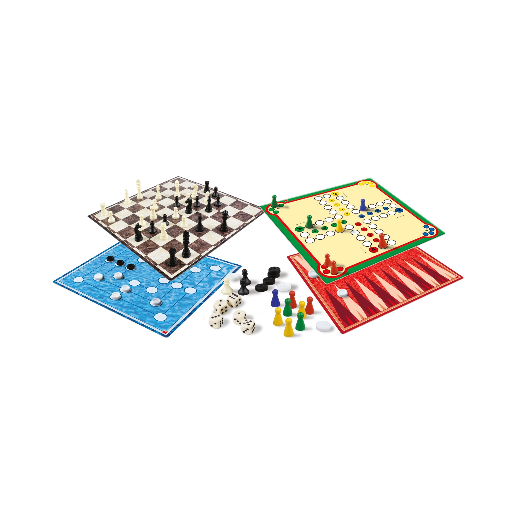 Rinkinyje yra: 2 dvipusiai žaidimo planai (4 žaidimo paviršiai), 32 šachmatų figūrėlės dviejų spalvų, 16 figūrėlių keturių spalvų, 30 damos akmenėlių dviejų spalvų, 6 kauliukai su akutėmis, 1 instrukcija.