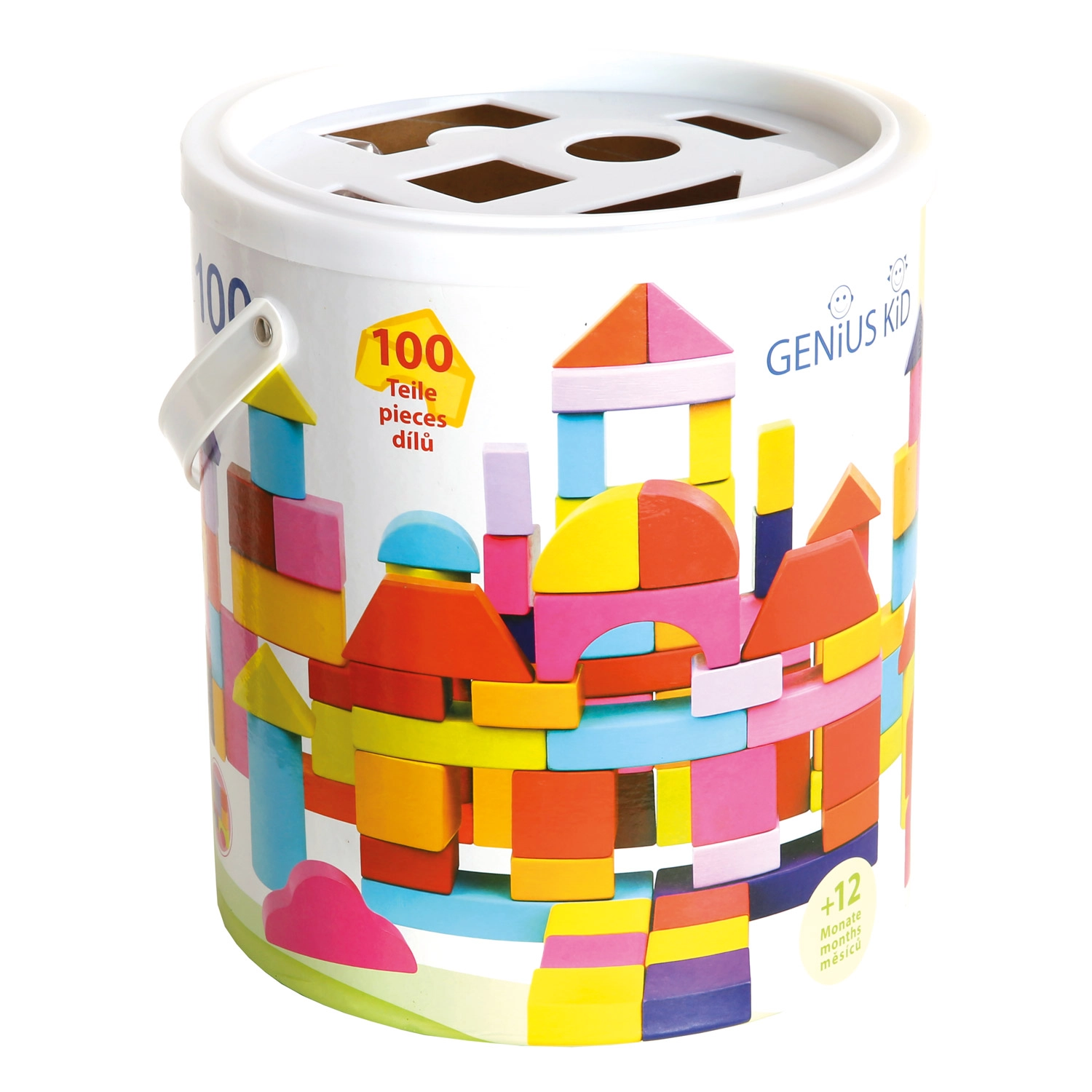Šis gausus medinių kaladėlių rinkinys naujomis spalvomis suteikia vaikams begalines galimybes statyti bokštus, tiltus ir paprastas konstrukcijas. Patogi kartoninio kibirėlio pakuotė palengvina laikymą ir nešiojimą, o dangtelis su angomis veikia kaip rūšiavimo lenta logikai ir kantrybei lavinti.