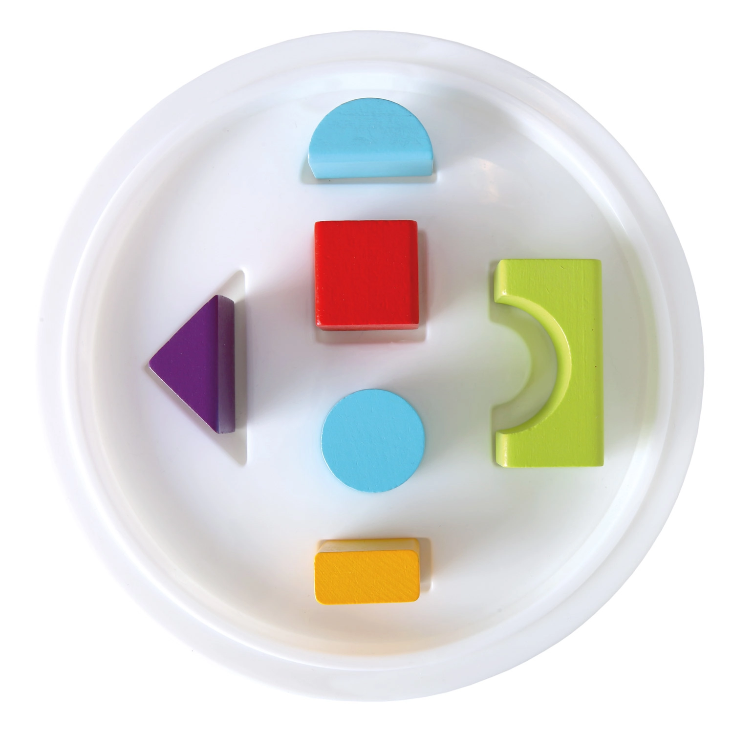 Pakuotės dangtelis virsta rūšiavimo lentele. Taip vaikai nejučia treniruoja formų atpažinimą, koordinaciją ir loginį mąstymą dėdami kaladėles atgal.
