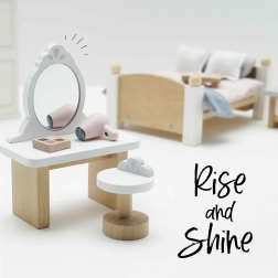 Le Toy Van pristato miegamojo rinkinį, kuris suteikia elegancijos ir komforto bet kuriam lėlių nameliui. Žaismingas, svajingas vaikų fantazijos pasaulis su šiuo rinkiniu tampa tikrove.