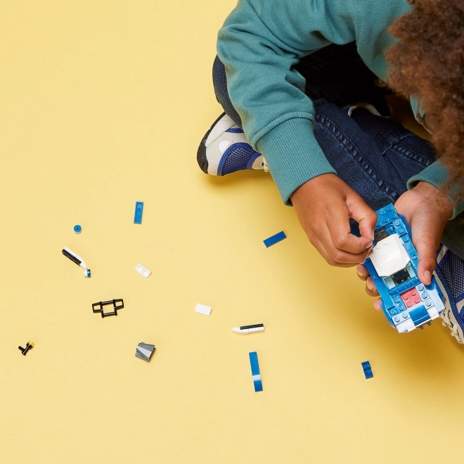 LEGO policijos automobilio modelyje yra vietos policininko minifigūrėlei ir realistiškų detalių dinamiškam žaidimui.