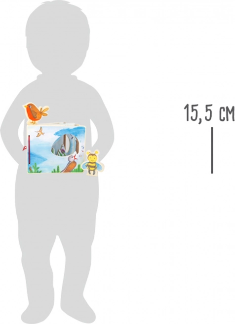 Atraskite gamtos pasaulį su šia medine paveikslėlių knygele patiems mažiausiems. Linksmos bitutė ir paukštelis lydi vaikus kiekviename puslapyje, lavina vaizduotę, smulkiąją motoriką ir pirmąjį pažinimą su flora ir fauna. Figūrėles galima saugiai laikyti pritvirtinus jas prie knygos nugarėlės su lipniais užsegimais (velcro). Pagaminta iš 100 % FSC sertifikuotos medienos.